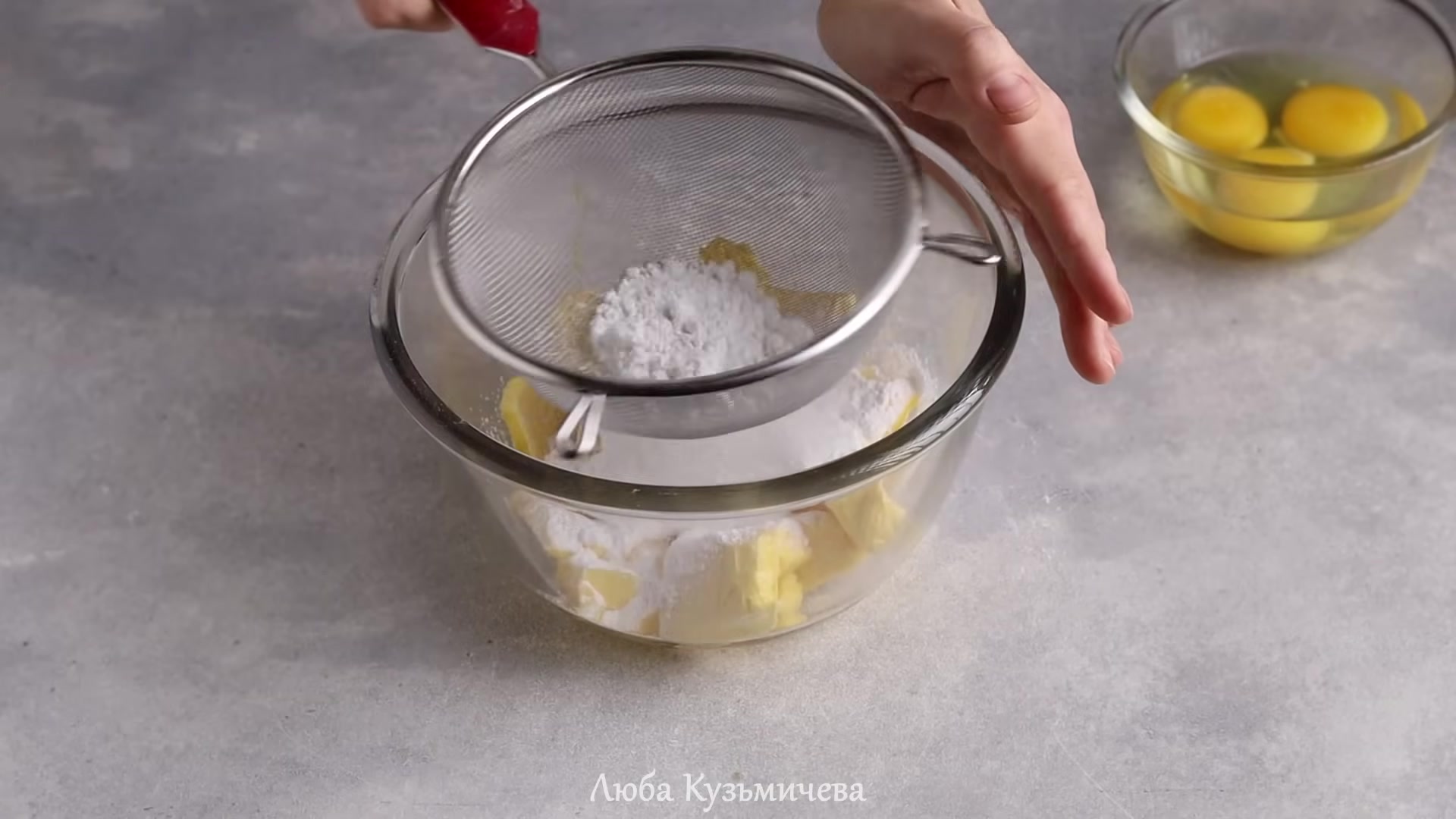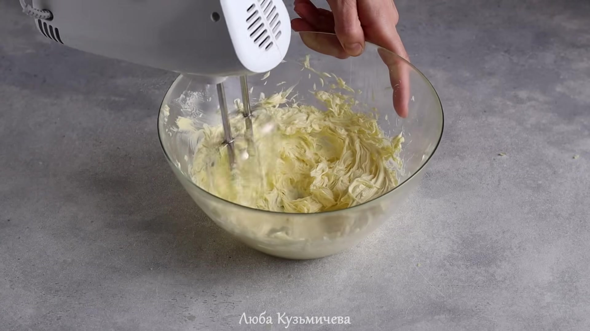 - Tereyağının çırpılması. Oda sıcaklığındaki tereyağını (hafifçe yumuşamış olmalıdır) pudra şekeri ile birleştirin ve pürüzsüz olana kadar çırpın.