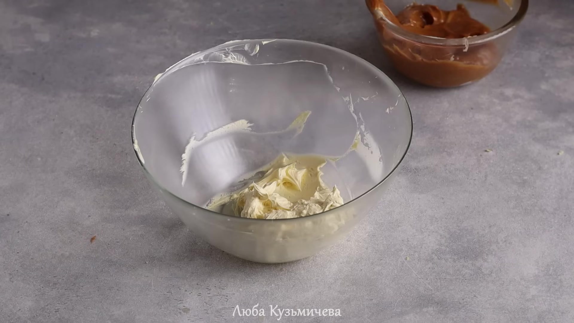 - Karamelize sütün eklenmesi. Karamelize sütü (ayrıca oda sıcaklığında) çırpılmış tereyağına iki aşamada ekleyin ve her seferinde pürüzsüz olana kadar mikserle iyice karıştırın.
